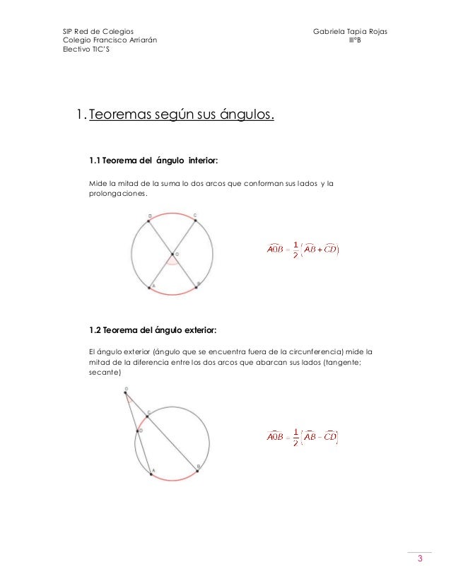 Teoremas de ángulos, dentro y fuera de la circunferencia.